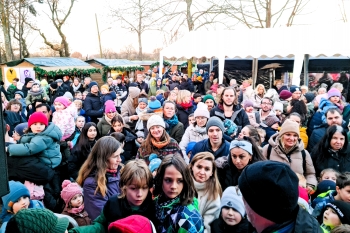 Für die kleinen Besucherinnen und Besucher waren erneut die engagierten Sängerinnen und Sänger rund um Jürgen Tomaskowicz im Einsatz. Am Sonntag begrüßten sie mit einem Potpourri kindgerechter Weihnachtslieder den von Volker Kapala dargestellten Nikolaus. Der traditionelle „Nikolaus-Zauber“ wurde wie immer vom Runden Tisch Rumeln-Kaldenhausen ausgerichtet und von Ferdi Seidelt moderiert – ein Angebot, das für viele Familien längst zum festen Bestandteil des Adventswochenendes gehört. Pfarrer Johannes Berghaus und Diakonin Conny Brennemann erzählten die Nikolausgeschichte, zuvor hatte Dr. Peter Maas die Kutschenpferde eingespannt. Nach gut zwei Stunden waren rund 200 Kinder mit einem großen Schoko-Nikolaus beschenkt – und überall strahlten die Gesichter der Eltern und Anverwandten.