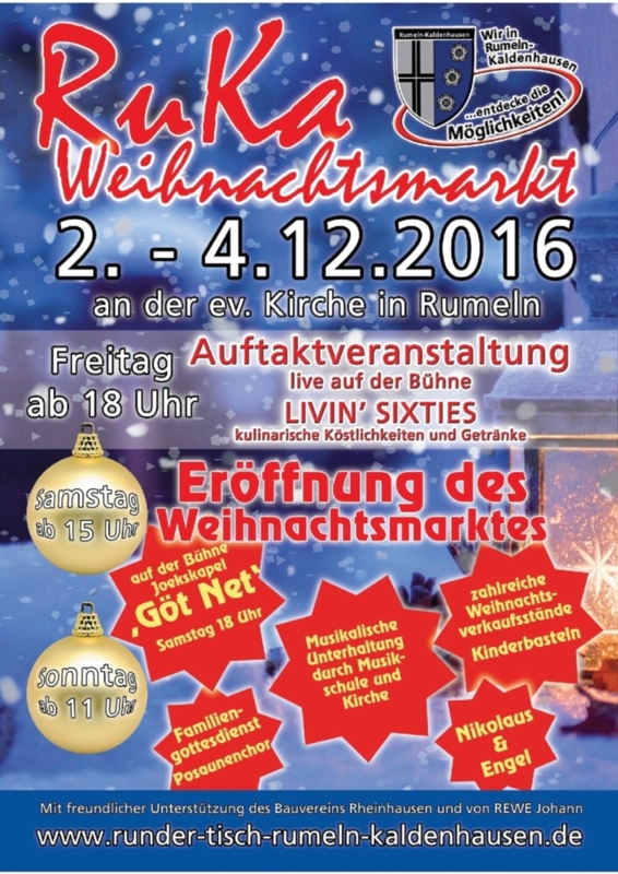 Zum nunmehr 17. Weihnachtsmarkt laden Runder Tisch (RT) Rumeln-Kaldenhausen und die Evangelische Kirchengemeinde Jung und Alt herzlich ein. Ort des Geschehens sind vom 2. bis zum 4. Dezember das Außengelände, die Kirche und das Gemeindezentrum an der Friedhofallee.