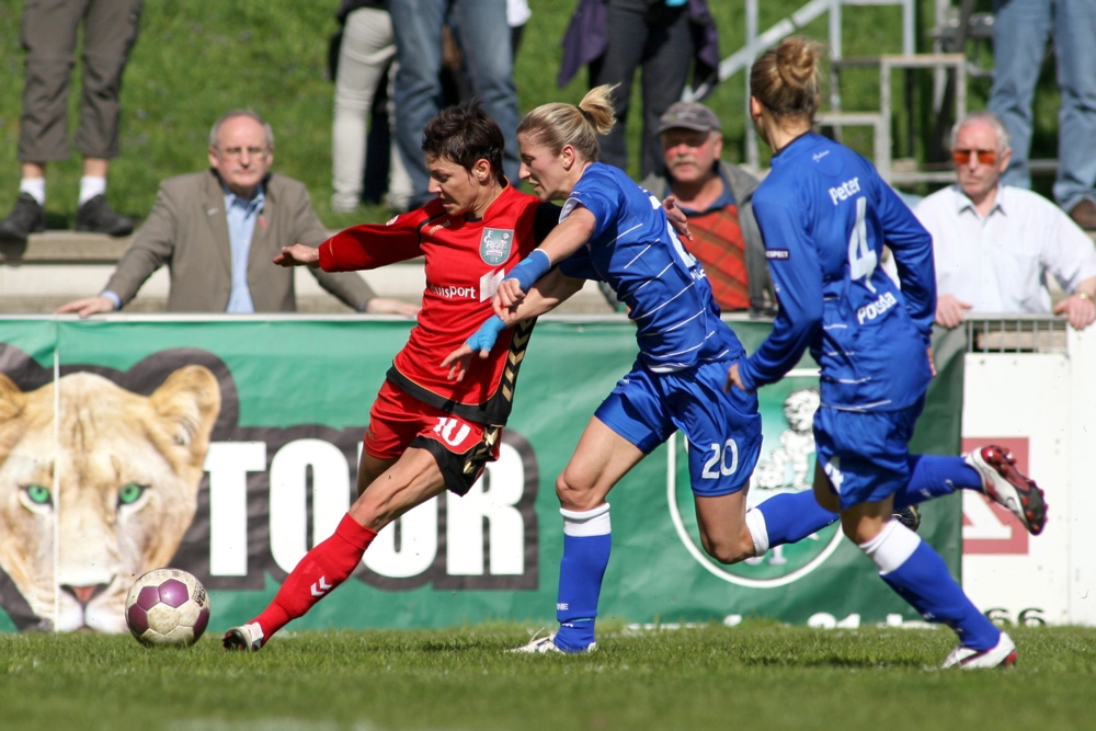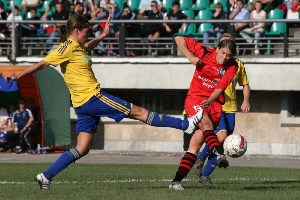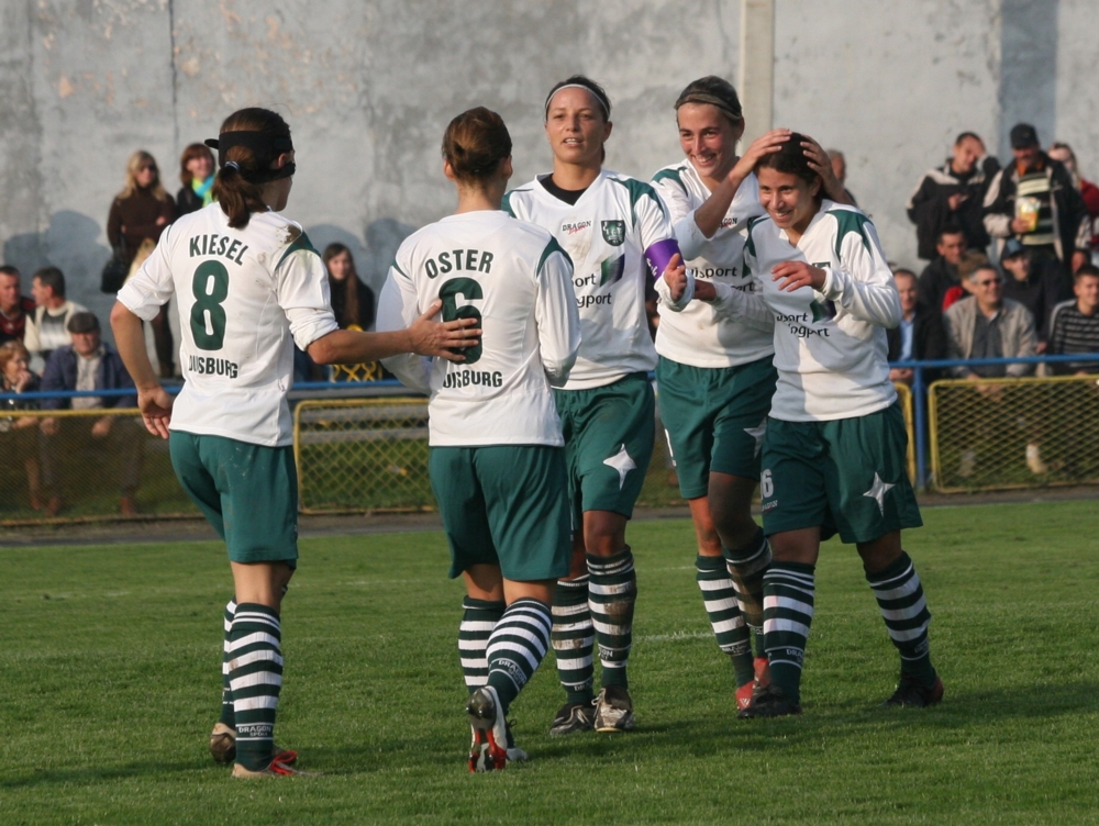 Finale mit Hin- und Rückspiel! Nachdem der FCR bei Zwezda 2005 Perm (Russland) bereits 6:0 gewonnen hat, gibt es am 22. 5. 2009 in der MSV-Arena ein 1:1 – hier erzielt Daryna Apanaschenko die Gäste-Führung (26.), Annike Krahn gleicht kurz vor dem Pausentee aus (45 + 1').