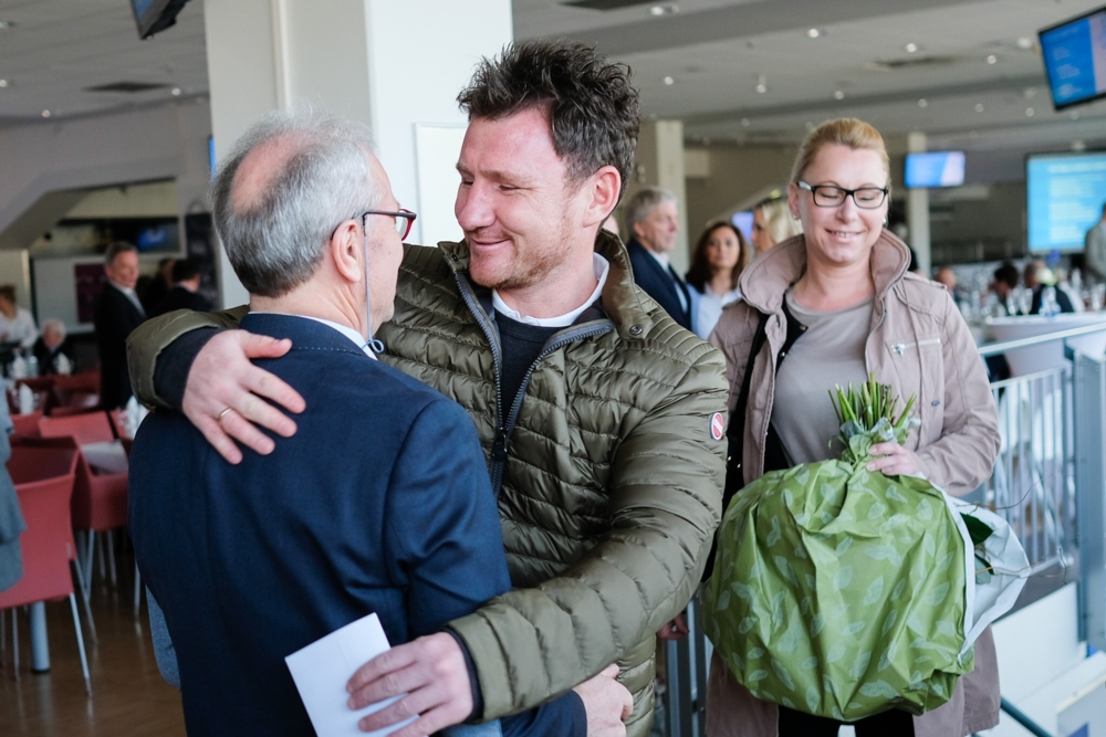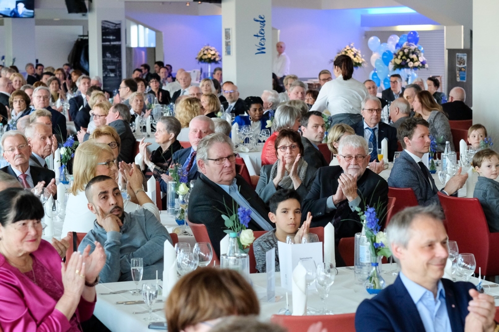 Zuvor hatte WDR-Kult-Sportreporter Werner Hansch in seiner lockeren und umgangssprachlichen Art das Geburtstagskind auf die Bühne geholt. Der bedankte sich, sympathisch-bescheiden wie immer, für die ungezählten Ehrerbietungen. Die kamen von OB Link („Ennatz ist ein durch und durch sozialer Mensch, ein ehrlicher Charakter.“) und MSV-Präsident Ingo Wald („Die MSV-Gremien, lieber Ennatz, profitieren von Deiner sportlichen Kompetenz. Du sagst, was Du denkst.“). Film-Material wie der aktuelle MSV-Trailer und der im Herbst anlaufende Dietz-Kinofilm (zu sehen gab es einige Promo-Minuten) würdigten in immer neuen Variationen den Menschen Bernard Dietz, der weit mehr ist als nur ein erfolgreicher Fußballer.