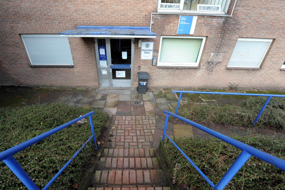 3 - Die Giebelseite des Anbaus verrät es. Im Kirchfeld hatte das renommierte Bienenmuseum Duisburg von 1986 bis 2013 eine neue Heimat gefunden, unterhielten das Bezirksrathaus Rheinhausen und die Polizei Duisburg vielgenutzte Außenstellen.