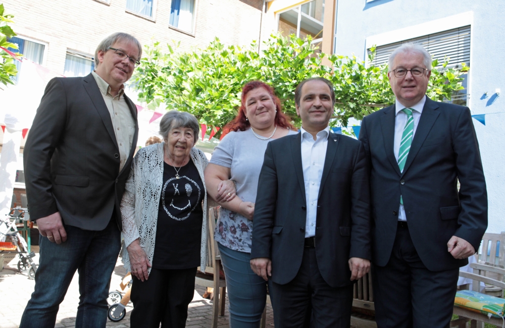 Wenn gute Menschen feiern hat auch Petrus ein Einsehen. Bei allerbestem Wetter blickte jetzt das Evangelische Pflegeheim Altes Rathaus / Rumelner Hausgemeinschaften“ auf sein zehnjähriges Bestehen. Die Vorgeschichte: Im Sommer 2002 erwarb die Evangelische Altenhilfe Duisburg (EAHD) die Immobilie und nahm sie nach umfangreichen Umbau- und Erweiterungsarbeiten im Frühjahr 2006 als zeitgemäßes Pflegeheim in Betrieb. „Schuld“ daran war der damalige EAHD-Geschäftsführer Johannes Eßmann, der sich, wie er sagte, in das Gebäude „verguckt“ hatte. Als Architekt der sehr ambitionierten Veränderung des ehemaligen Beamtentempels zeichnete Arno Kleinlützum verantwortlich.